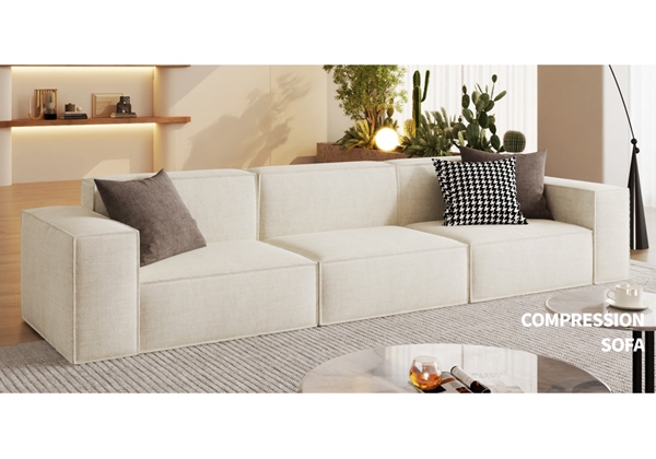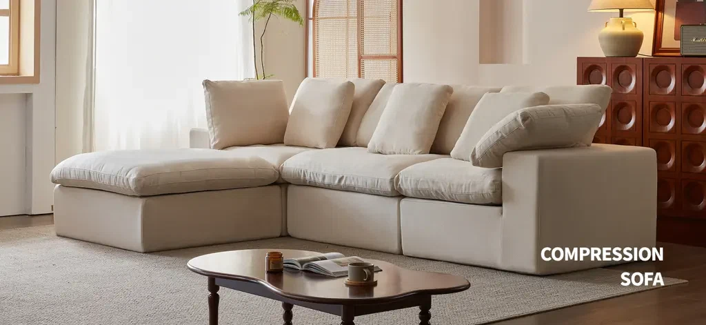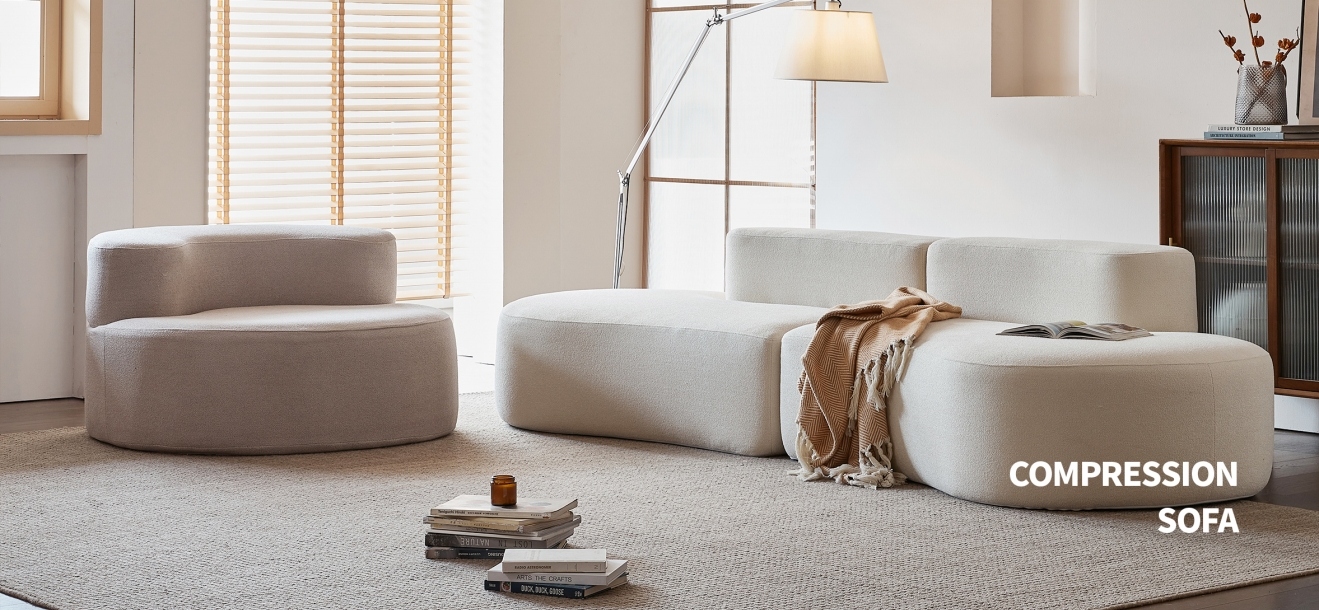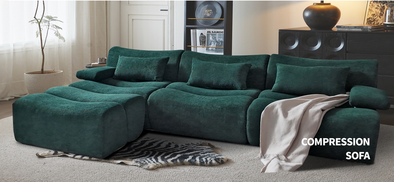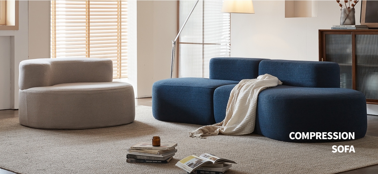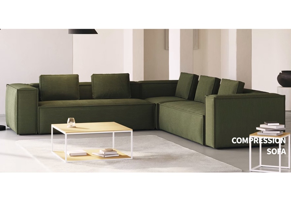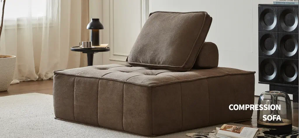 Auracasa compression sofa | It carries the ecological revolution of green high-resilience sponge with a volume compression rate of 65%, and folds out the balanced aesthetics of space and nature with zero-carbon technology.